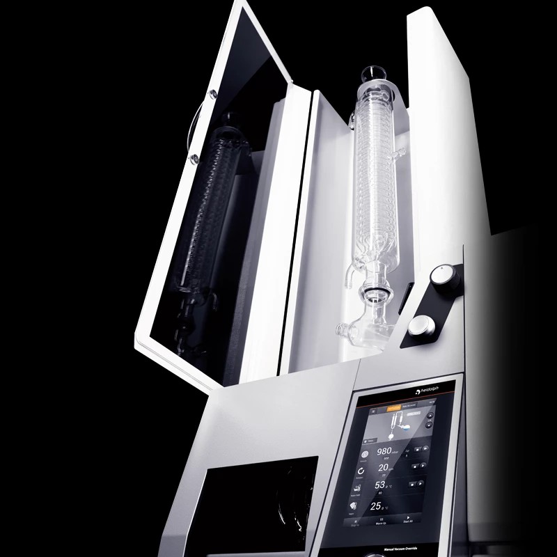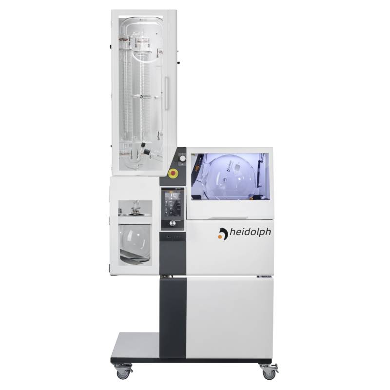 蒸發(fā)瓶和接收瓶受透明、防霧 PMMA 防護(hù)罩保護(hù),有效提高安全性。水/油兩用加熱鍋可用水或浴液,最高加熱溫度可達(dá) 180 °C。集成自動補液系統(tǒng)、溢流口及底部放液閥。EASY LOCK可實現(xiàn)單人更換蒸發(fā)瓶。